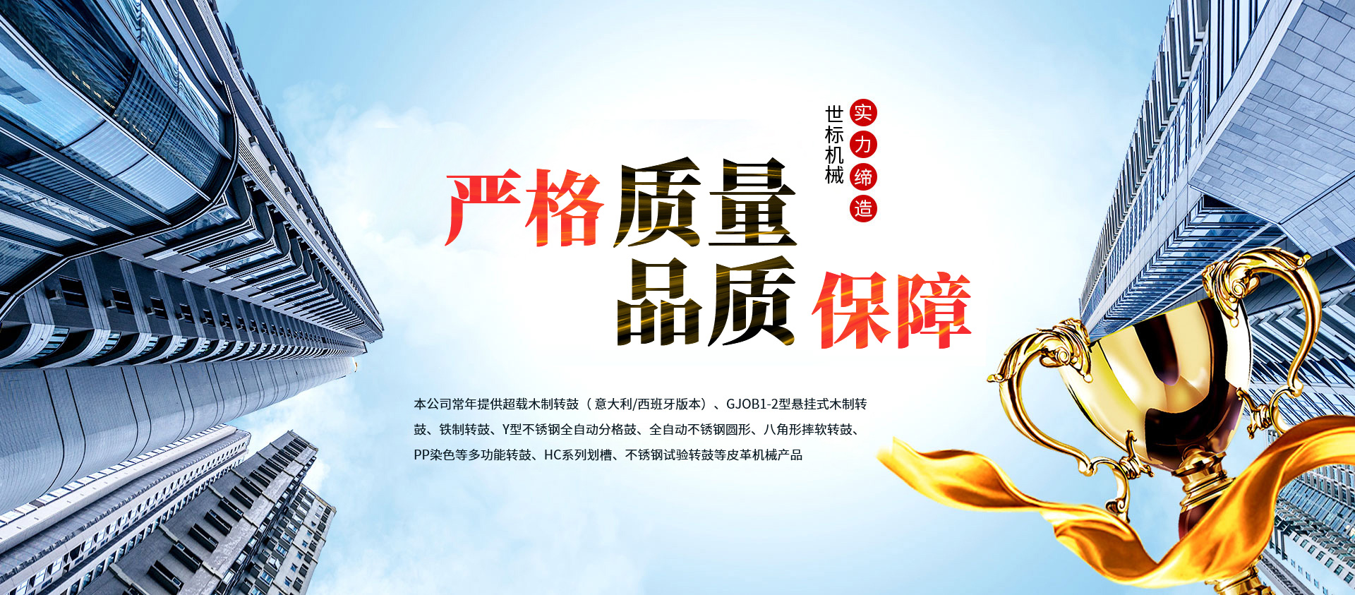 本公司常年提供超載木制轉鼓( 意大利/西班牙版本)、GJOB1-2型懸掛式木制轉鼓、鐵制轉鼓、Y型不銹鋼全自動分格鼓、全自動不銹鋼圓形、八角形摔軟轉鼓、PP染色等多功能轉鼓、HC系列劃槽、不銹鋼試驗轉鼓等皮革機械產品,產品暢銷浙江、山東、廣東、福建、河南、河北、四川、新疆、遼寧等地,且遠銷非洲、東南亞、南美洲、中美洲等多國,深受各大制革廠家的青睞。產品相繼通過省級鑒定和全國皮革、制鞋機械質量檢測監督中心的抽樣合格檢驗,在2010中國高新技術、新產品博覽會上一舉榮登銀獎寶座,其配件鋼芯泥塑鼓樁獲 專利權。本公司并向客戶提供皮革機械特殊規格設計、設備維修調試、技術改革等各項便捷服務,具有健全的檢測體系和可靠的售后服務。